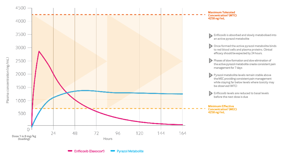 DAXOCOX® PROVIDES CONSISTENT PAIN CONTOL FOR A WHOLE WEEK WITHOUT OVER-ACCUMULATION, DUE TO ITS 7-DAY PHASIC PHARMACOLOGY